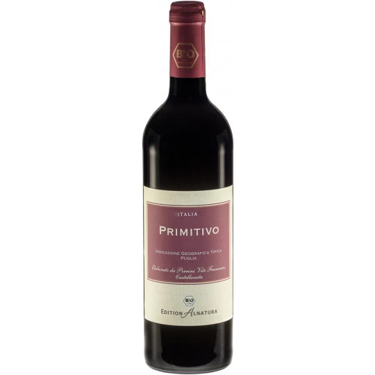 Ein trockener italienischer Rotwein aus der Serie Alnatura Edition. Der tiefdunkle Wein stammt aus der Region Puglia (Apulien), wurde 2016 geerntet und hat ein würzig-kräftiges Aroma, welches an Kirschen und Schokolade erinnert. Der Alnatura Primitivo ist vegan und stammt aus biologischer Landwirtschaft.
