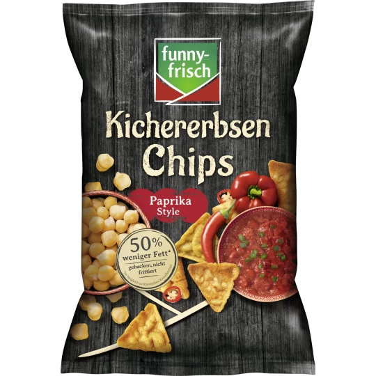 Unsere funny-frisch Kichererbsen Chips: Aus Kichererbsen hergestellt und knusprig gebacken, werden sie für funny-frisch lecker gewürzt. 50% weniger Fett*, intensiv gewürzt, besonders knusprig!