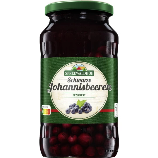 Abtropfgewicht: 225G. schwarze Johannisbeeren gezuckert.